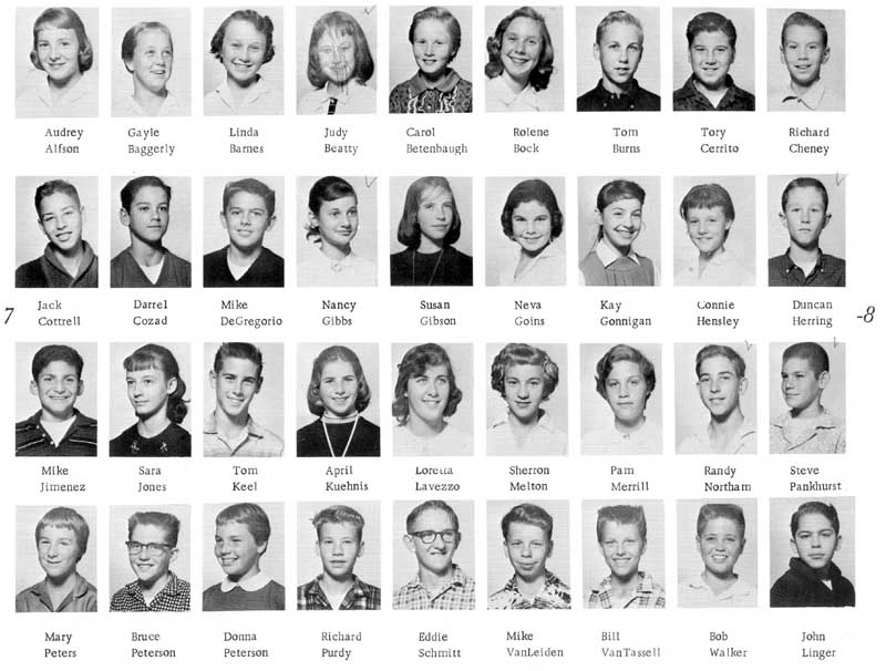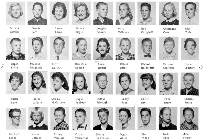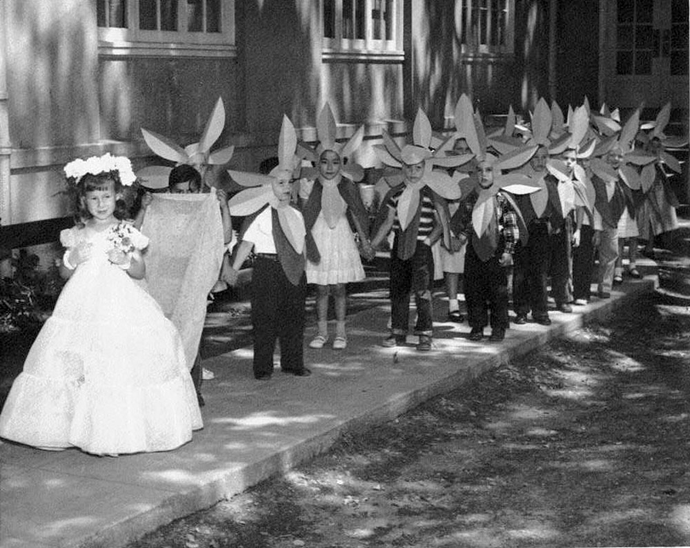 | 7-8 | Many thanks to Judy Beatty for supplying these pages. She is pictured here leading a parade of Spring flowers in this classic 1953 photo at University Avenue School.