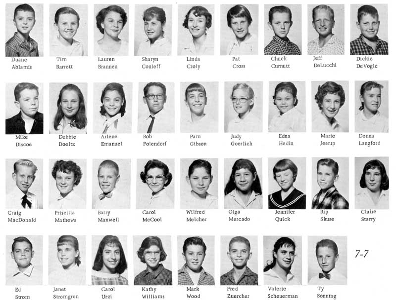 AVENUE SCHOOL 1959 Here are excerpts from this yearbook, including all seventh grade class pages and faculty pictures. | 7-1
